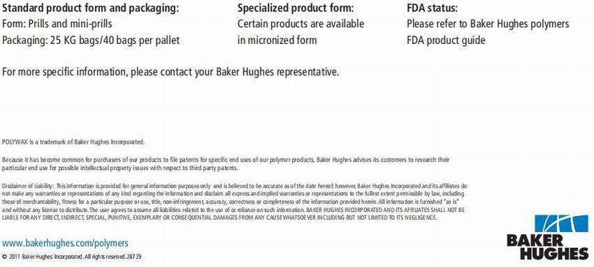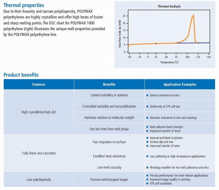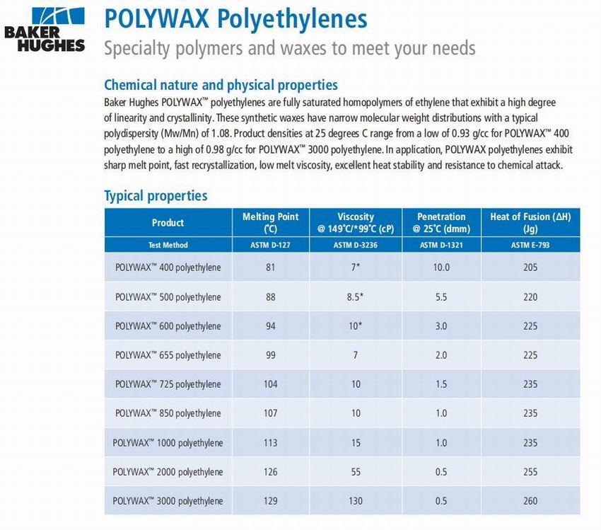 · Diax 2770 · Polywax 500 · Polywax 1000 · Unilin 550 · Vybar 103 |